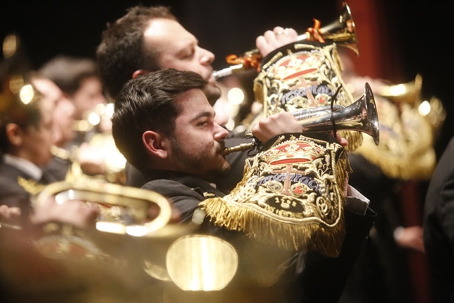 Así, como preludio de la Semana Santa, más de dos centenares de músicos ocuparon el Teatro Municipal Quijano de Ciudad Real en un recital que fue abierto por la banda anfitriona con la marcha de aires flamencos 'Gitano tú eres... de Santa María'. Tras ella, llegó la interpretación de dos piezas propias: 'Triana', rearmonizada por Eleazar Fernández Aranda, y 'Amargura en tu soledad', dedicada a una de las imágenes titulares de la Hermandad de La Soledad.